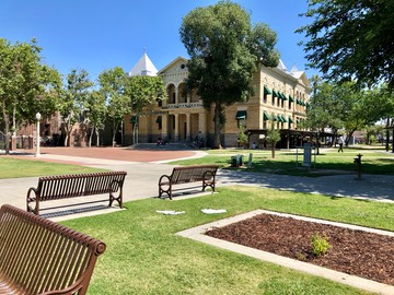 As Hanford was the county seat, I thought that the downtown might house some interesting civic and commercial buildings. I was in luck, as you can see by the photos taken around Courthouse Square. Although the actual government functions moved to new buildings on the edge of town in the 1970’s, the 1890’s ere courthouse and jail have been remodeled into shops and offices. In the 1920’s a Veterans Hall and Municipal Auditorium were built on the other side of the square, while a Fox Theater was built on the west side. However, on a sleepy Sunday, the biggest attraction was the Superior Dairy ice cream shop on the east side.