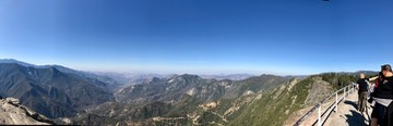 To start the day, I drove back to the Giant Forest and up the spur road to Moro Rock (which you can see in the pictures fromj Amphitheater Point on day 1). A 350-stairway and path provides access to the top of the rock. From the top (and also a points along the way, the view stretches from the Great Western Divide in the east to the San Joaquin Valley to the west. The top of the rock is at 6725 feet above sea level while the peaks in the distance top out at 12,000 to 13,ooo feetand shield views of the Kern River drainage and the High Sieera crest further east. Pictures from the climb of the rock are here.